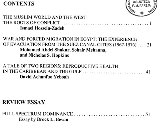 Está indexada en varias bases de datos, como Historical Abstracts, International Political Science Abstracts; America: History and Life; Political Science Abstracts; Periodica Islamica; e Index of Islamic Literature.