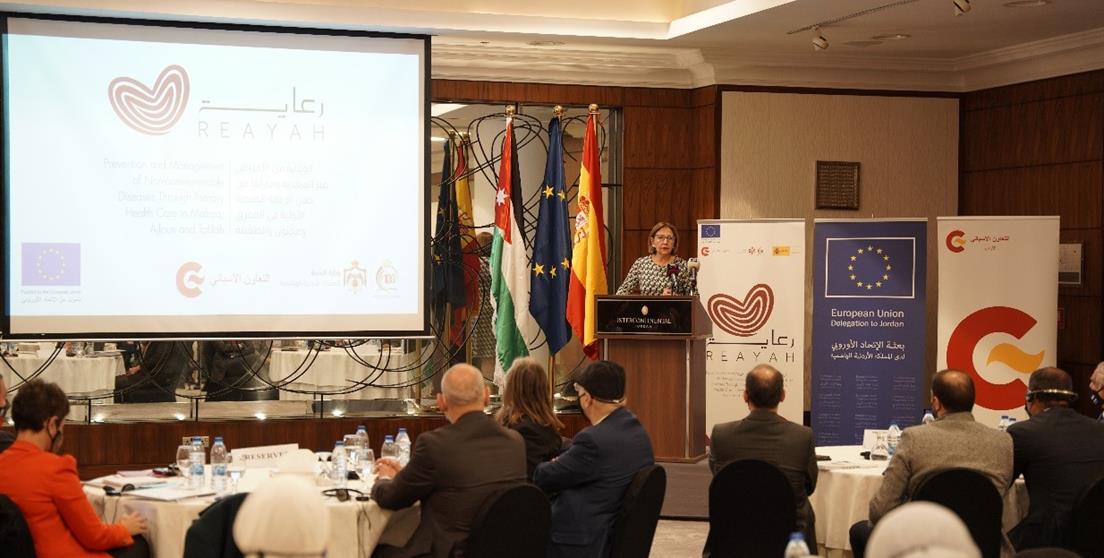 El proyecto REAYAH, financiado por la Unión Europea y ejecutado por AECID, fue presentado públicamente a través de un evento organizado por AECID y el Ministerio de Salud de Jordania. El evento estuvo presidido por el Secretario General del Ministerio de salud, Dr. Raed Al Shboul, la embajadora de España en Jordania, Sra. Aránzazu Bañón Dávalos y la embajadora de la Unión Europea, Sra. María Hadjitheodosiou.