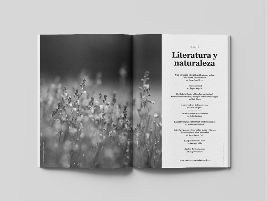 La edición de julio/agosto incluye además el DOSSIER «Literatura y naturaleza», coordinado por el filólogo, editor y profesor de literatura hispanoamericana Jesús Cano Reyes, cuyas reflexiones, junto a las de Ángela Segovia, Niall Binns, Clara Obligado, Gabi Martínez, María Sonia Cristoff, Berta García Faet, Santiago Wills y Jorge Comensal, configuran esta sección.