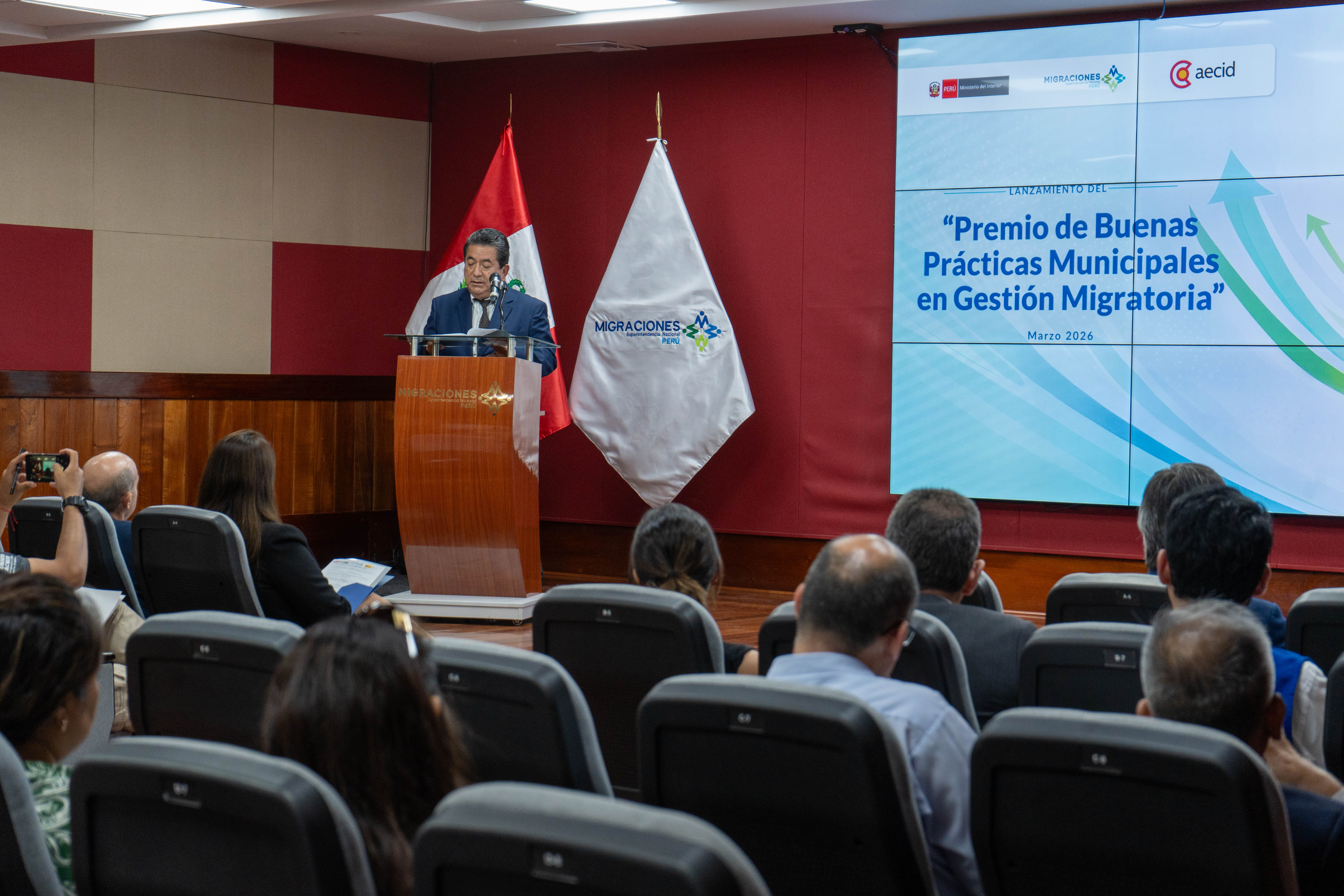 La Agencia Española de Cooperación Internacional para el Desarrollo (AECID) y la Superintendencia Nacional de Migraciones del Perú invitan a todas las municipalidades de Lima y Callao a participar en la convocatoria del premio “Buenas Prácticas Municipales en Gestión Migratoria en Lima y Callao”. El objetivo del premio es reconocer y visibilizar experiencias de gobernanza migratoria a nivel local que contribuyan a fortalecer la gestión pública, así como promover la inclusión y la integración con enfoque de derechos humanos. Durante el evento de lanzamiento, se presentaron los resultados del primer año del proyecto “Promoción del enfoque migratorio en los gobiernos locales de Lima Metropolitana y Callao”, iniciativa que cuenta con el apoyo de la AECID y da origen a este premio. Entre los principales logros destacan la exposición itinerante “Migrantes: expresiones de un país diverso”, elaborada a partir del acervo histórico del Archivo Central de Migraciones, que resguarda el “Primer tomo de expedientes de naturalización del Departamento de Nacionalización, Extranjería e Inmigración (Lima, 1940–1941)”. Asimismo, se han desarrollado cursos de capacitación en gestión migratoria y competencias comunicacionales, guías de asistencia técnica, fondos concursables, encuentros internacionales y un diagnóstico sobre el acceso a servicios municipales. Las municipalidades interesadas pueden revisar las bases del concurso en el siguiente enlace: https://www.gob.pe/institucion/migraciones/informes-publicaciones/7915140-premio-de-buenas-practicas-municipales-en-gestion-migratoria El plazo de postulación será del 20 de abril al 10 de mayo, y los resultados se publicarán el 1 de junio. Este premio busca reconocer el esfuerzo de las municipalidades de Lima y Callao que vienen trabajando por construir comunidades donde todas las personas puedan vivir mejor y en paz. Asimismo, apuesta por visibilizar y compartir aquellas experiencias que están dando resultados, para que sirvan de inspiración a otros gobiernos locales y demuestren que es posible generar cambios positivos en beneficio de la ciudadanía. En esa línea, esta iniciativa también reafirma un compromiso que continúa: tras el trabajo conjunto desarrollado durante el 2025, el premio marca el cierre de esta etapa y, a la vez, impulsa a que más autoridades se sumen a este camino de integración. Esta iniciativa se enmarca en el Marco de Asociación para el Desarrollo Sostenible (MA) España–Perú 2024–2027, que establece líneas de cooperación orientadas a garantizar los derechos de la población migrante y su integración socioeconómica y cultural, contribuyendo al desarrollo local.