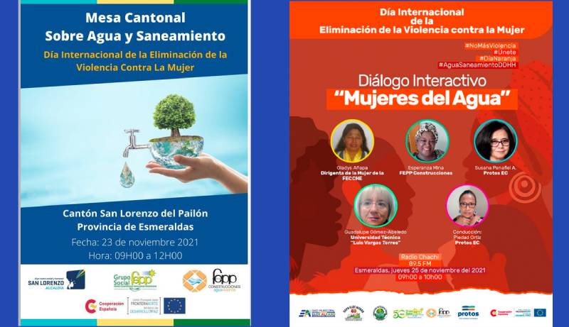 También en la provincia de Esmeraldas, y dentro del mismo proyecto, tendrá lugar en San Lorenzo la Mesa Cantonal sobre agua y Saneamiento, que tiene como objetivo promover el diálogo para la elaboración de propuestas de políticas locales sobre Gestión Integrada de los Recursos Hídricos (GIRH) y Gestión Comunitaria del Agua, desde un enfoque basado en derechos humanos, género e interculturalidad, con participación de los gobiernos autónomos descentralizados, a nivel cantonal y parroquial, actores locales y la cooperación internacional.