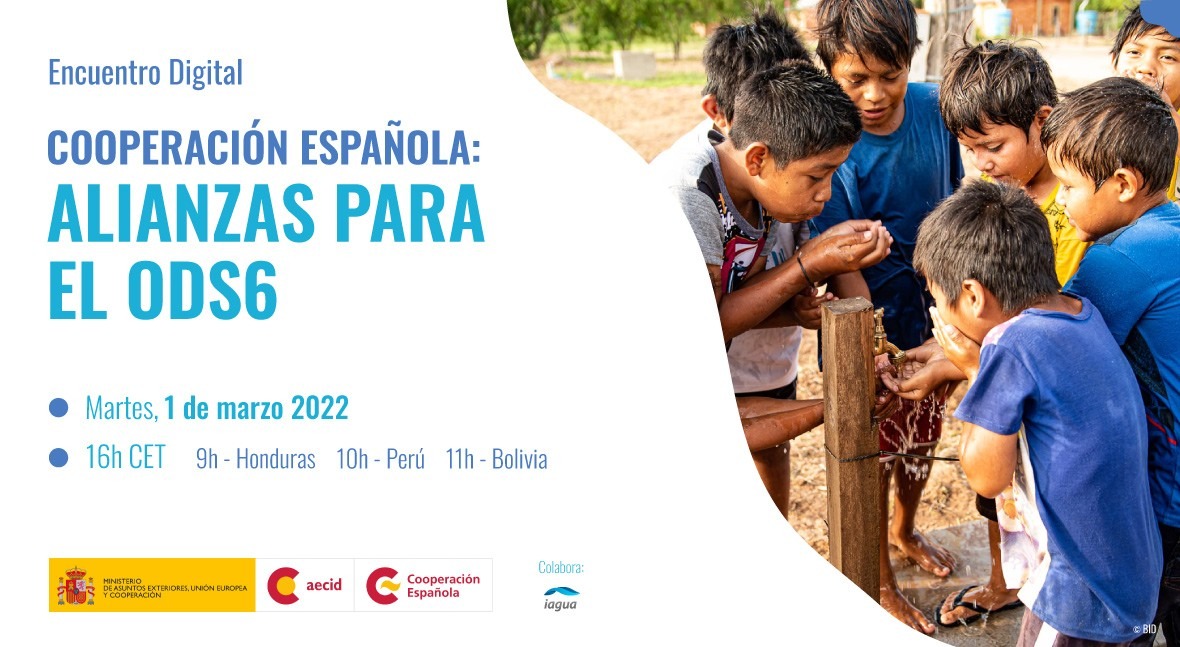 El martes, 1 de marzo, de 16:00 a 18:00 (hora española) tendrá lugar el encuentro digital 'Cooperación Española: Alianzas para el ODS 6', en el que participarán diversas entidades y organizaciones relacionadas con la Cooperación Española y el sector del agua y el saneamiento.