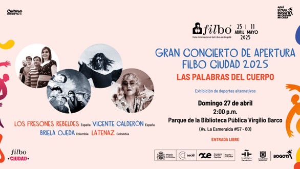 El próximo domingo 27 de abril, el parque Virgilio Barco de Bogotá (Colombia) servirá de escenario para ‘Las Palabras del Cuerpo’, un concierto que servirá de inicio a la programación de FILBo Ciudad 2025, organizada en el marco de la participación de España como país invitado de honor en la Feria Internacional del Libro de Bogotá (FILBo).