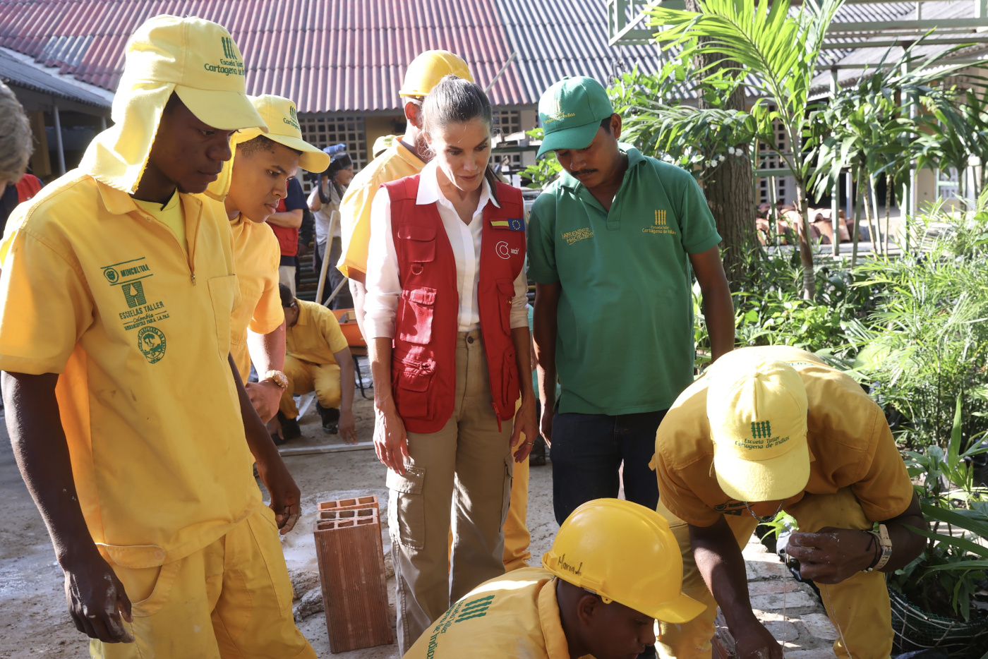 A primera hora de la tarde, Su Majestad la Reina junto a la Primera Dama han visitado las instalaciones de la Escuela Taller de Cartagena de Indias donde acompañadas por el ministro de Cultura de Colombia, han recorrido una exposición fotográfica sobre la Escuela y los trabajos realizados, y las áreas de jardinería, cocina, electricidad, albañilería, carpintería, soldadura y forja, y pintura. Un encuentro con los alumnos y profesores de la Escuela Taller ha puesto fin a la visita.