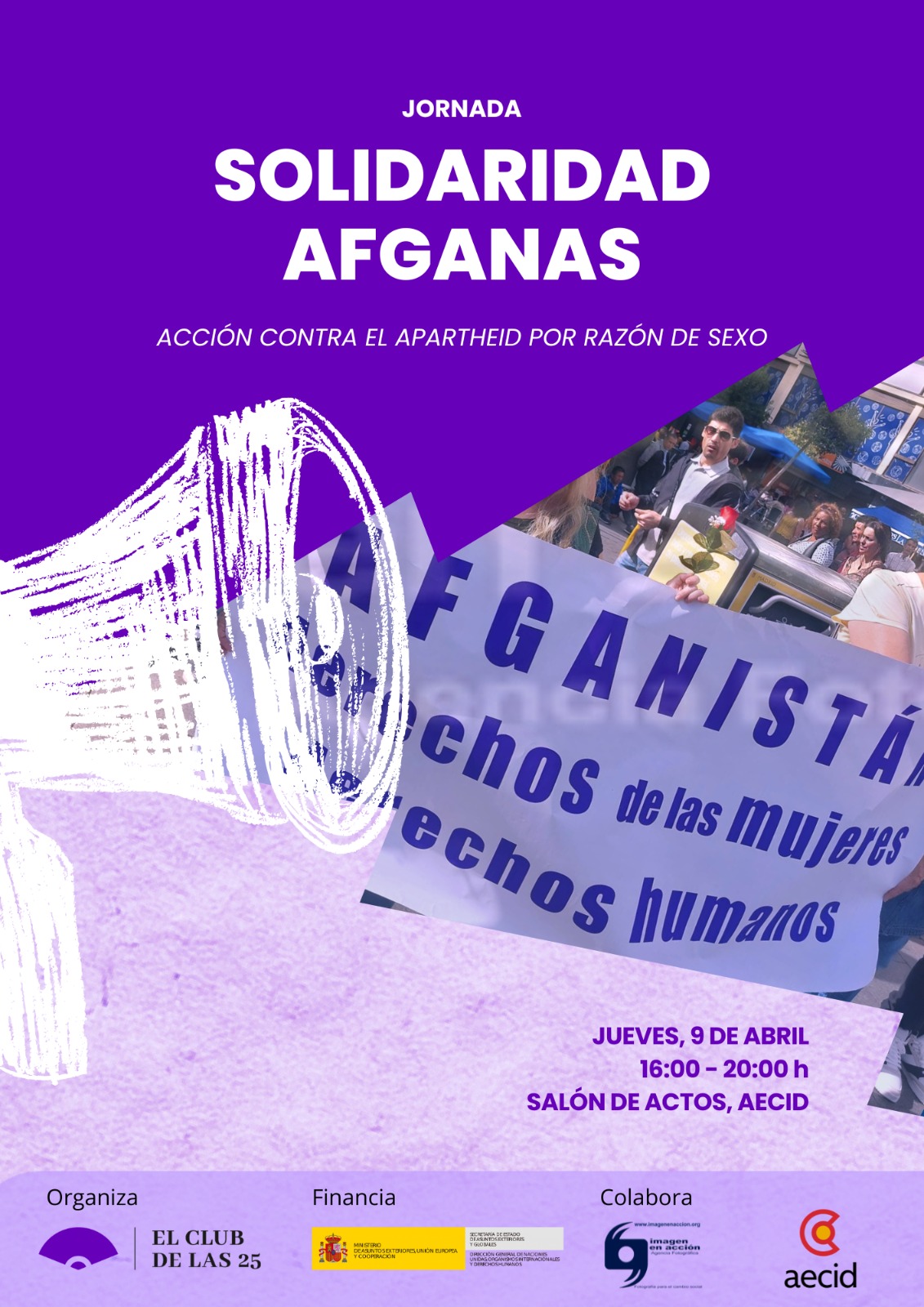 El próximo jueves 9 de abril, nuestra sede en Madrid acogerá la jornada "Solidaridad Afganas: Acción contra el Apartheid por razón de sexo", organizada por el Club de las 25. La situación de las mujeres y niñas afganas requiere una respuesta global coordinada. Este encuentro busca visibilizar las vulneraciones sistemáticas de sus derechos y sumar fuerzas internacionales para combatir esta segregación. Por parte de la AECID, contaremos con la participación de Antón Leis, director de la AECID, en la inauguración y con Miriam Benterrak, en la mesa “Red de ayuda feminista”. Consulta el programa. Inscripciones aquí. 🗓️ 9 de abril 🕓 16:00–20:00 h 📍 Sede AECID, Madrid
