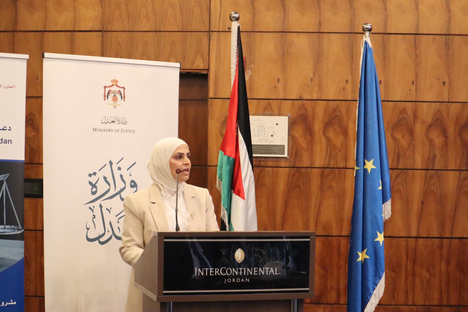La ceremonia de clausura del programa financiado por la Unión Europea "Apoyo al Estado de Derecho en Jordania" tuvo lugar el pasado jueves, 18 de mayo de 2023, en Amán y supuso el cierre de los dos últimos componentes del programa: el proyecto "Acceso a la Justicia y Empoderamiento Legal en Jordania: Hacia un Sistema de Asistencia Legal Eficaz y Sostenible", cofinanciado por la Agencia Española de Cooperación Internacional para el Desarrollo (AECID), y el proyecto "Fortalecimiento de la Cooperación Internacional y Asistencia Legal Mutua en Asuntos Penales, con énfasis en el Crimen Organizado y el Terrorismo en Jordania", implementado por la Oficina de las Naciones Unidas contra la Droga y el Delito (UNODC).