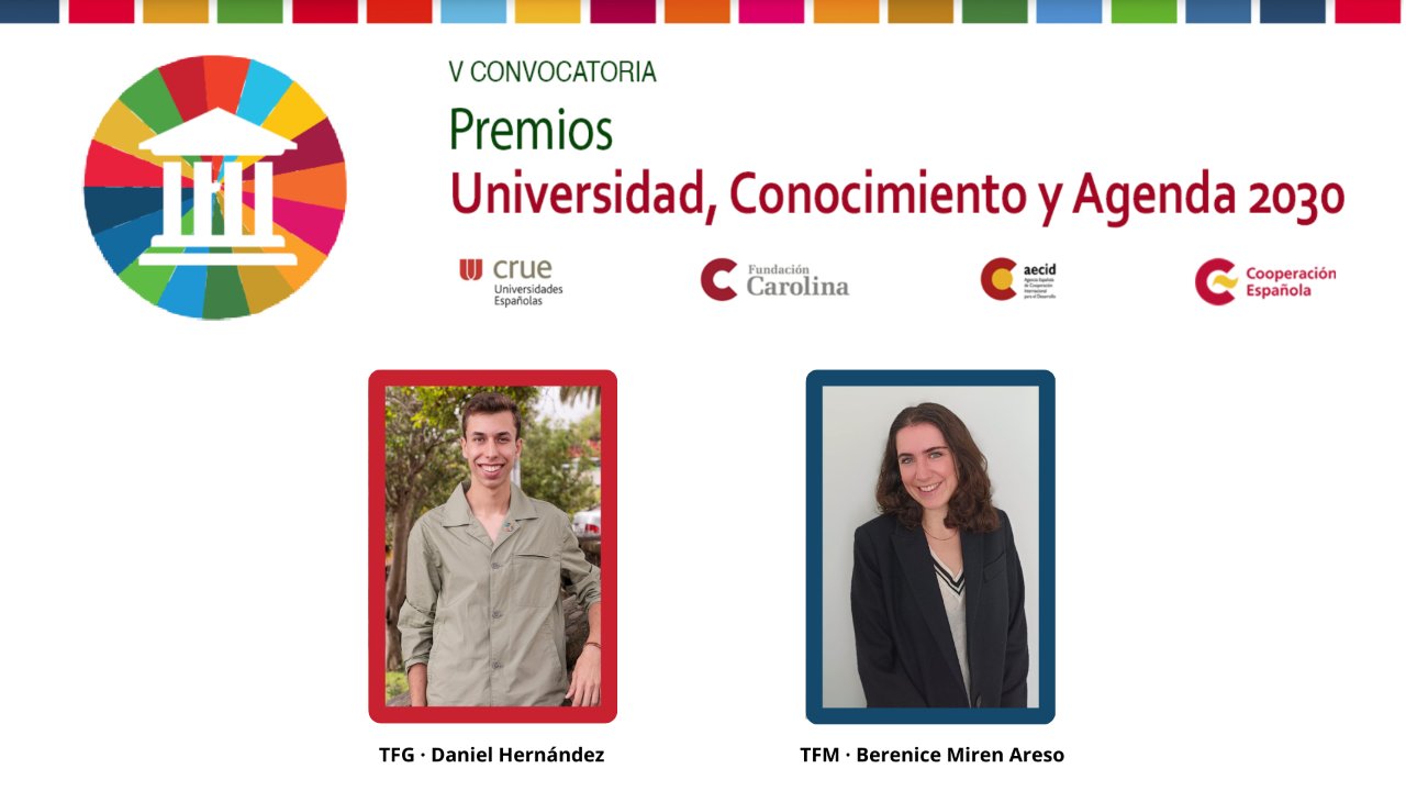 La V edición de los Premios “Universidad, Conocimiento y Agenda 2030” al mejor Trabajo de Fin de Grado (TFG) y de Fin de Máster (TFM) del curso académico 2022-2023, convocada por la Conferencia de Rectores de las Universidades Españolas, la Fundación Carolina y la Agencia Española de Cooperación Internacional para el Desarrollo (AECID) ha sido resuelta. Los trabajos premiados han sido:
